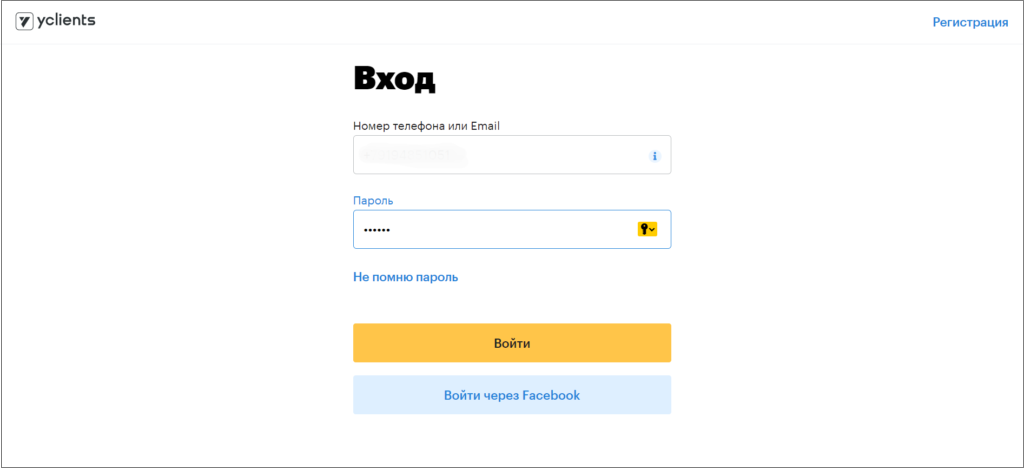 - Log in to YClients.
