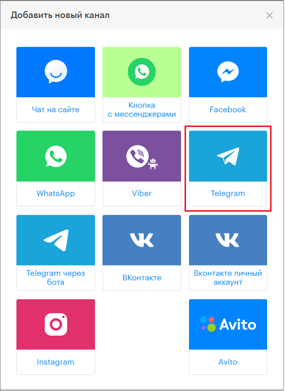2. In the window that appears, select the “Telegram” block.