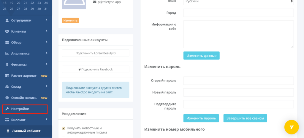 Connecting and configuring YClients in the Teletype panel