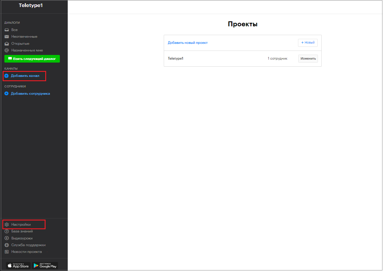 - Go to the “Add channel” section in the left menu of the Teletype panel or in the project settings.