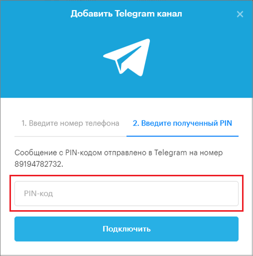 6. Wait for the PIN code sent to your Telegram and enter it in the field.