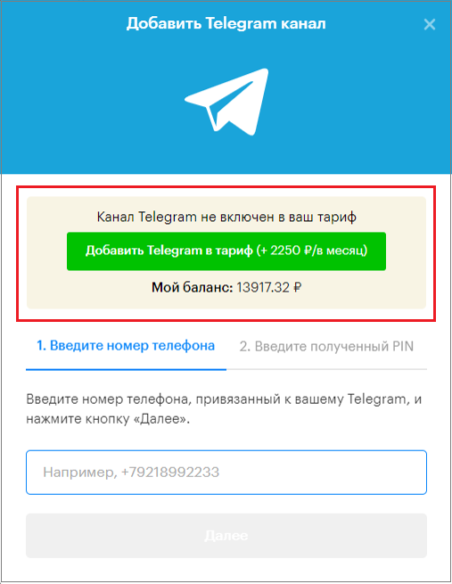Creating and connecting a Telegram channel by phone number