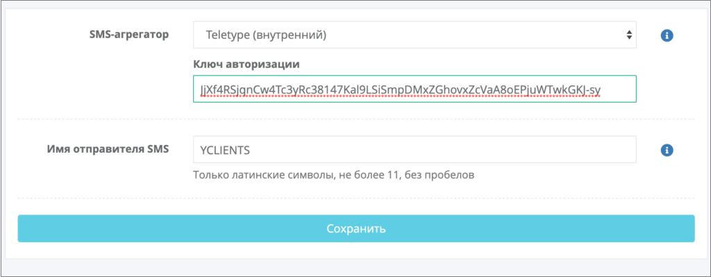 8. Return to the YClients settings, paste the copied authorization key into the field, and click save.