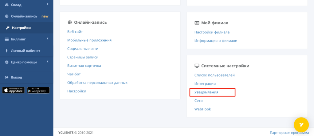 3. Then in the ‘System settings’ block, select Notifications.