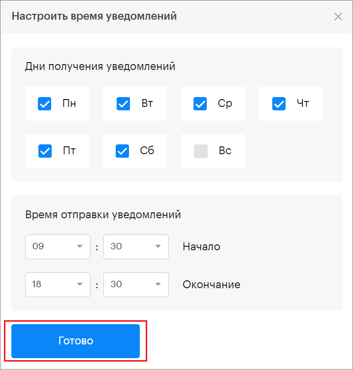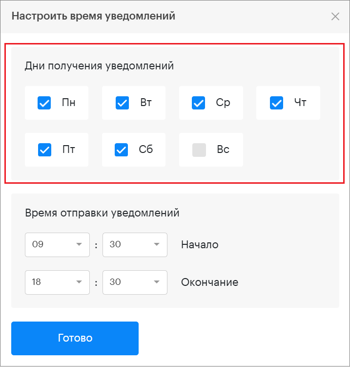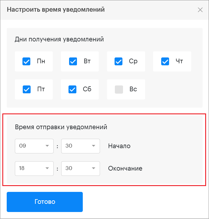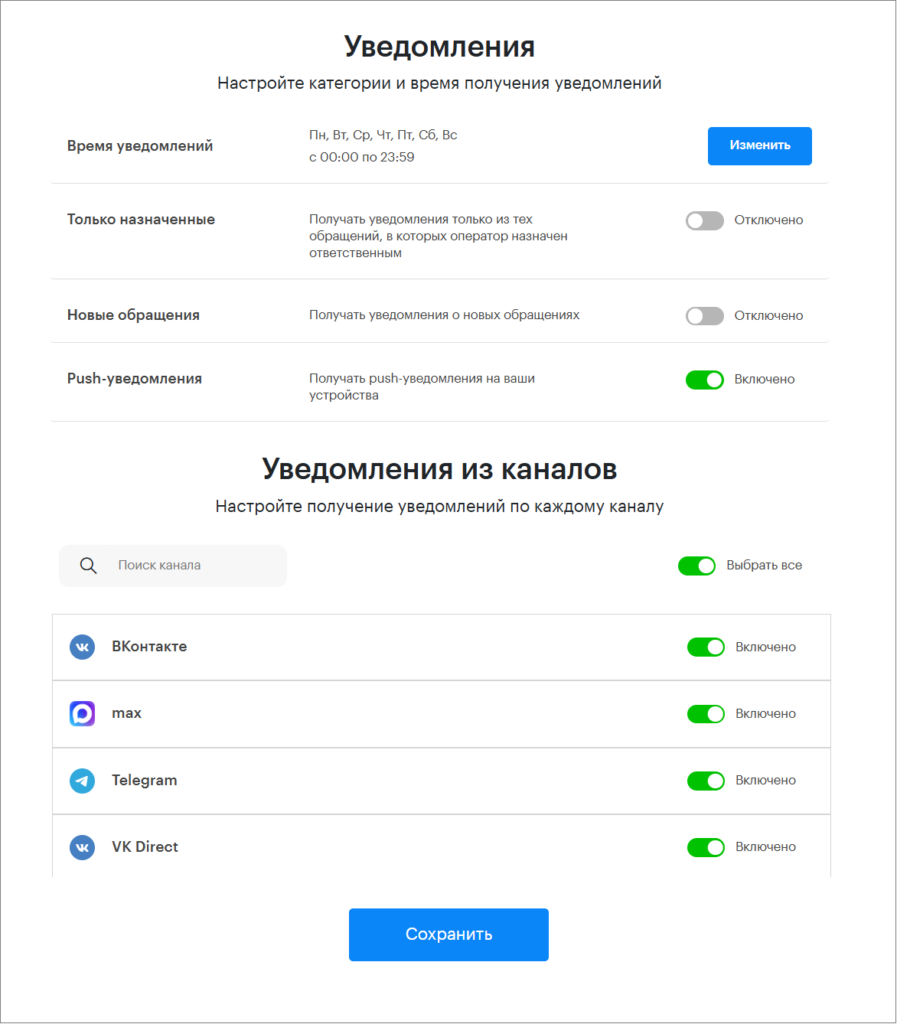 3. На открывшейся странице выполнить настройки звуковых уведомлений по категориям и времени суток, а также каналам связи.