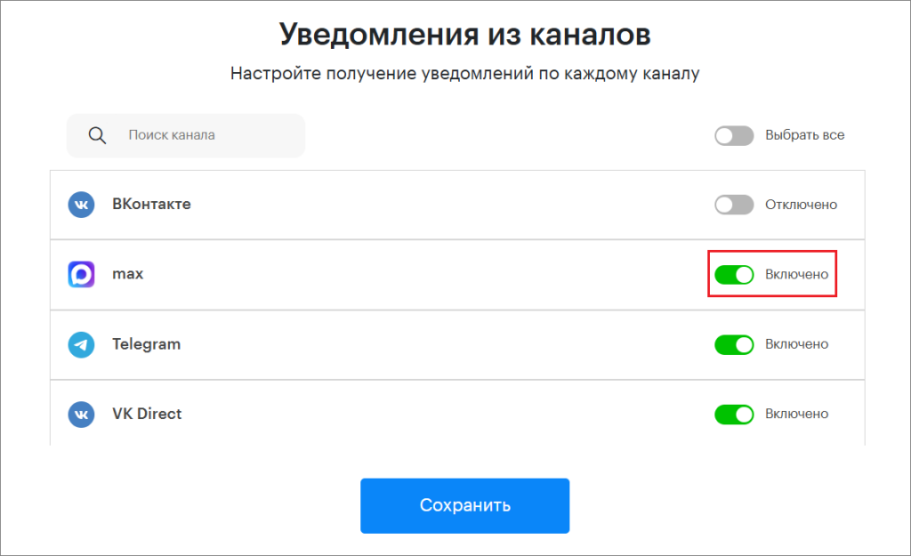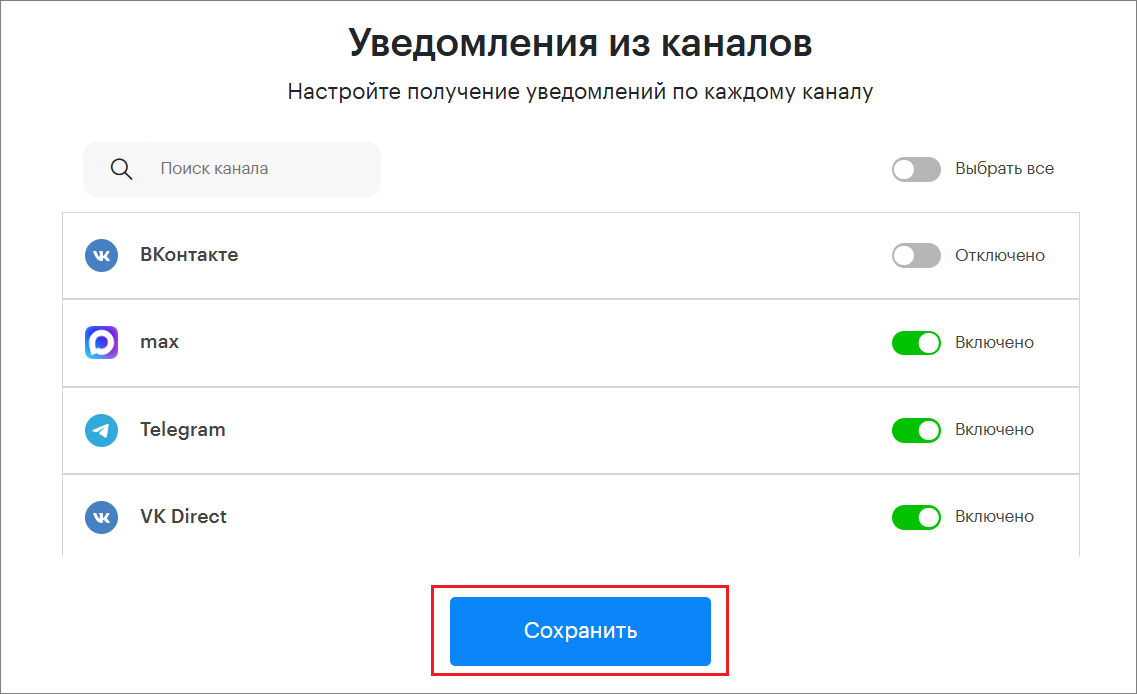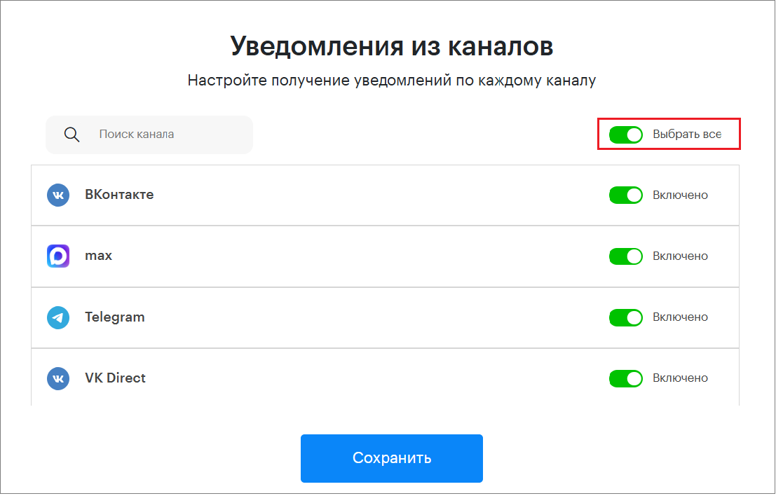 - Здесь можно настроить получение звуковых уведомлений по каждому каналу отдельно.