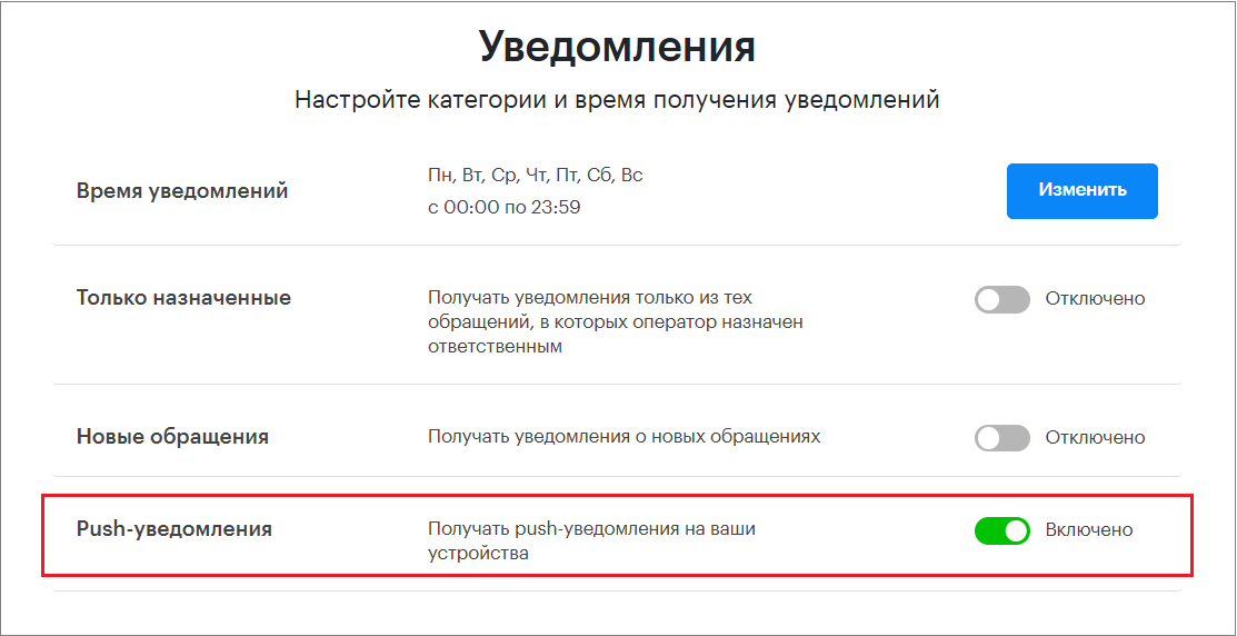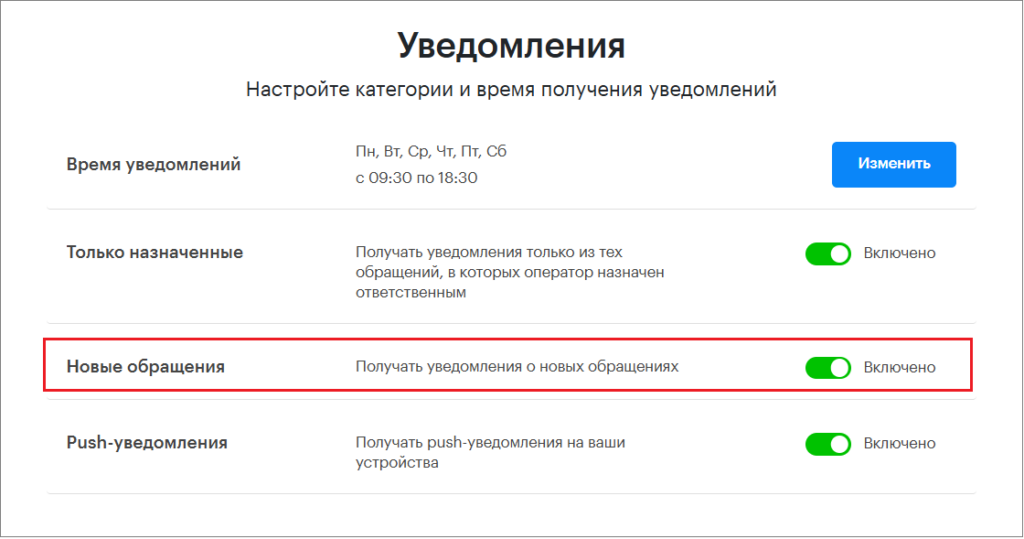 Эта настройка позволяет получать звуковые уведомления только о новых обращениях.