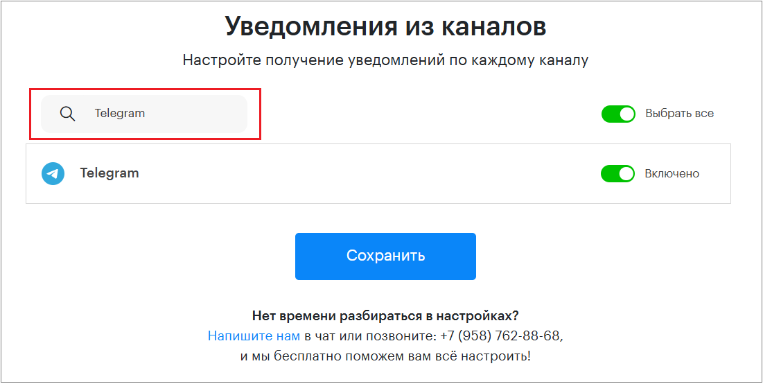 - Подключение Telegram по номеру без авторизации в панели по ссылке